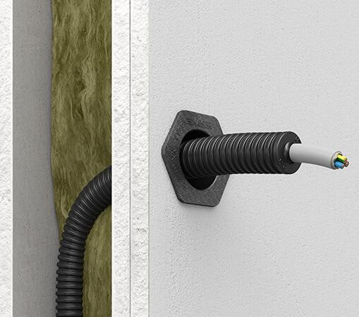 - A membránban lévő erősítő bordák biztosítják a védőcső légtömörségét a vezetékek és kábelek mellett