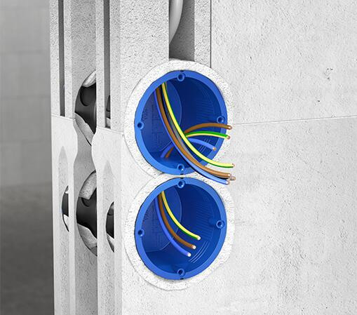 Hangszigetelő doboz tömör szerkezetű hangszigetelő falakhoz, szigorú hangszigetelési követelményekkel. A kiegészítő hangszigetelő bevonattal ellátott tömör doboztest elnyeli és visszaveri a hangot, így a szomszédos helyiségekben kizárt az interferencia, és a hangszigetelés sértetlen marad, mintha nem is lenne süllyesztett szerelvénydoboz.