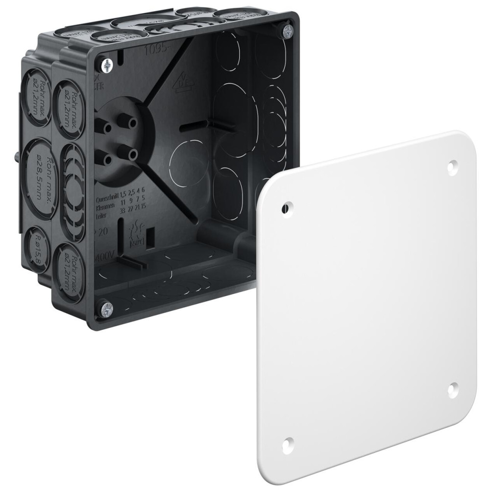 Kaiser 1095-01 négyzetes süllyesztett MÜDK elágazó doboz / kötődoboz fedéllel és 2 db csavarral - méret: 107×107×57 mm