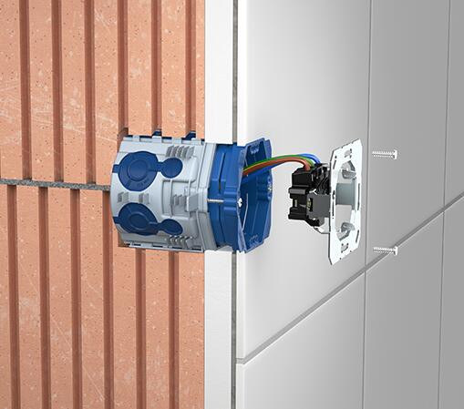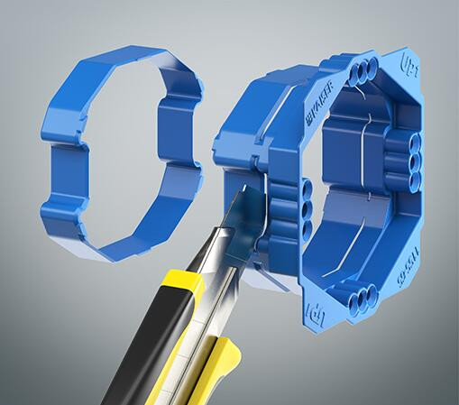 Az újonnan kifejlesztett vakolatkiegyenlítő keret segítségével még az mélyebben beépített KAISER UP¹ ECON Fix szerelvénydobozokba szerelt eszközök is a fallal egy síkba és a szabványoknak megfelelően telepíthetők. Ideális felújításokhoz is. A vakolatkiegyenlítő keret fokozatmentesen állítható, így például utólag vakolt vagy csempézett falak szakszerű áthidalására is alkalmas.