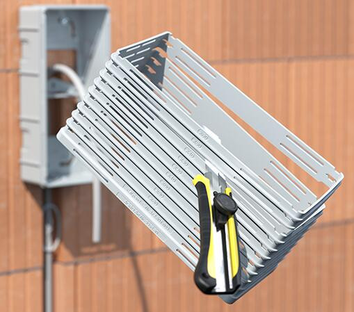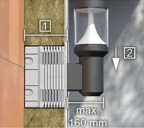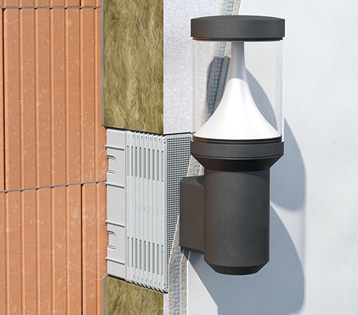 Univerzális eszköztartó elektromos berendezések biztonságos rögzítéséhez a hőszigetelő külső homlokzatokon. Külső lámpák, aljzatok, mozgásérzékelők, külső hőmérséklet-érzékelők, rádióvevők, szélerősség mérők, kamerák, levélszekrények és még sok más eszköz stabil rögzítése.