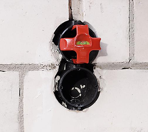 Termékelőnyök: gipszeléses szerelvénydoboz rögzítés során a doboz pontos vízszintes és függőleges pozícionálásához, egyszerű használat, központi vízmérték