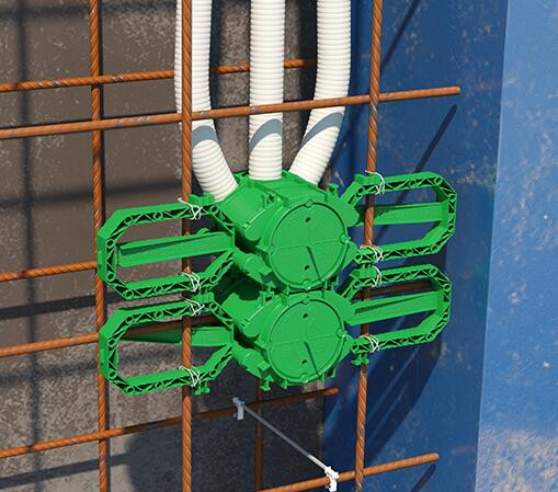 Termékelőnyök: integrált bordásvédőcső rögzítés, sorolható 71 mm-es központi távolsággal, jelzősörte az előlapon, integrált PREFIX® rögzítőfül, stabilan felhelyezhető a betonhálóra és könnyen rögzíthető dróttal vagy kötegelővel