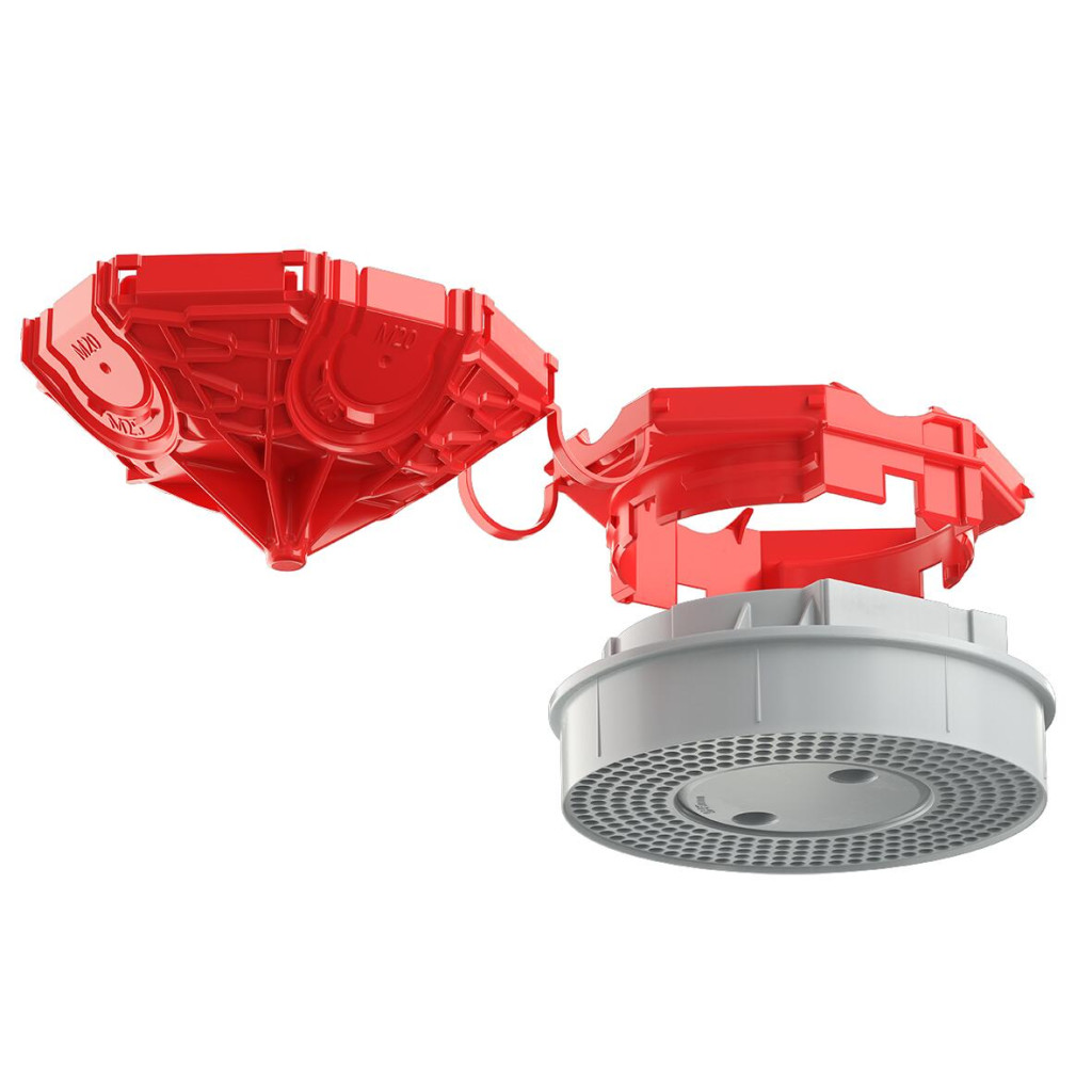 Termékelőnyök: mozgásérzékelők / füstérzékelők / kamerák / hangszórók / lámpák biztonságos rögzítése fűtő/hűtő mennyezetekre, integrált bordásvédőcső rögzítés, sorolható előlap 71 mm-es központi távolsággal, jelzősörte az előlapon, 2 darab PREFIX® rögzítőfül csatlakozási pont, rögzíthető minden zsaluzathoz a megfelelő technológiával ( szeg, forró ragasztó, ragasztófólia, mágnes), foglalat KAISER csillárhorgok részére