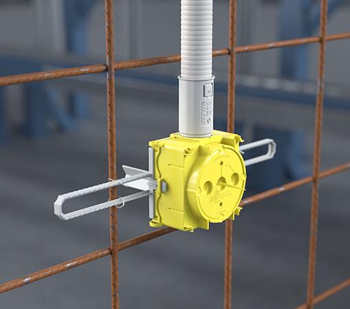 Az elülső és hátsó rögzítési lehetőségek révén biztonságosan rögzíthetők a zsaluzatra táguló dübelekkel, szegecsekkel, mágnessel vagy menetes csavarokkal. A hátsó oldali ütközőn elhelyezkedő támasztóelem és az oldalsó csatlakozók lehetővé teszik a pontos pozicionálást a zsaluzat két oldala között – 8 és 12 cm-es falvastagságokhoz optimalizált kialakítással.
