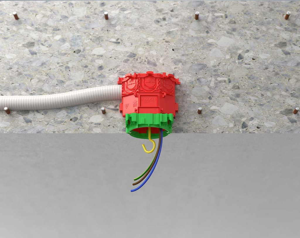 A Kaiser B¹ mennyezeti kötődoboz új szintre emeli a mennyezeti szerelések hatékonyságát. A doboz kialakítása egyszerűsíti a telepítést a mennyezeti zsaluzaton, az innovatív védőcső-bevezetések pedig lehetővé teszik, hogy több doboz sorba rendezve is gyorsan beköthető legyen, anélkül, hogy a csöveket el kellene vágni.