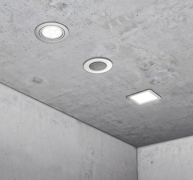 1. HaloX® 250 LED lámpa, hangszóró és eszközbeépítő dobozok és kiegészítőik beton falazatba
