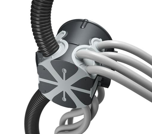 - Változtatható és szerszámmentes kábel- és védőcsőbevezetések