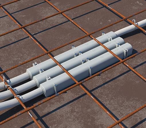 Beton mennyezetek belső oldalfalhoz csatlakoztatásához, mennyezeti kivezetésként vagy védőcsövek folytonos csatlakoztatásához. A hosszúkás forma lehetővé teszi a nagy tűrések kompenzálását könnyű elválasztófali előtolásoknál.