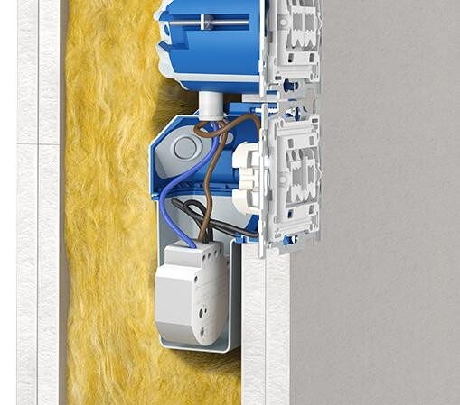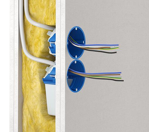 Szilárd doboztestének köszönhetően a hangszigetelő 68 Flex elektronik doboz a doboz aljzatán lévő hangelnyelő felülettel együtt garantálja a fal hangszigetelő funkcióját. A további szigetelőcsíkok minimalizálják a test hangátvitelét az csatlakozónyílásokon keresztül. A gyors telepítés ideális a meglévő rendszerek korszerűsítéséhez vagy bővítéséhez. A rugalmas alagút megkönnyíti a telepítést, és helyet biztosít az elektronikai alkatrészeknek (KNX, EIB és egyéb aktuátorok, vezérlők), kábeltartalékoknak és csatlakozóknak.