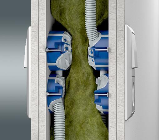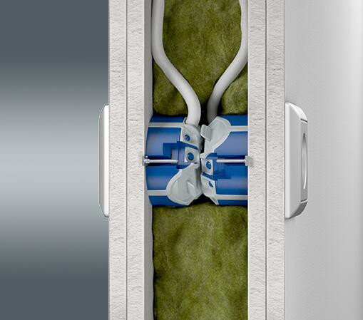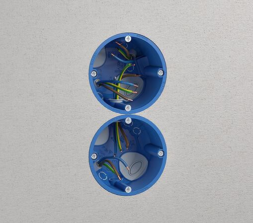 Szilárd doboztestüknek és a doboz alján lévő hangelnyelő felületnek köszönhetően hangszigetelő 68 szerelvénydoboz és egyrészes csatlakozó- és kötődoboz garantálja a fal hangszigetelését. Ez a funkció a közvetlenül ellentétes telepítés esetén is teljes mértékben megmarad. Az egyszerű védőcső bevezetési nyitási folyamat és a 68 mm-es beépítési nyílás gyors szerelést és egyszerű utólagos beépítést biztosít a meglévő elektromos berendezésekben.