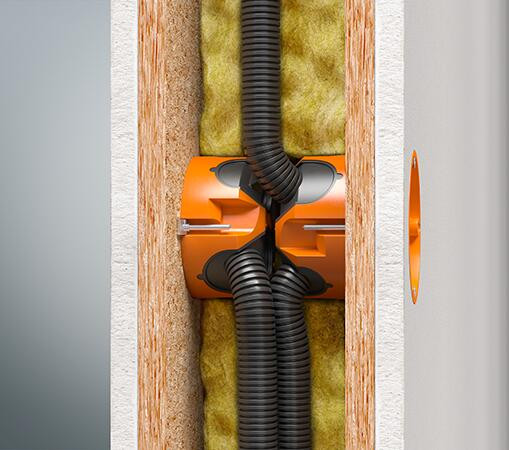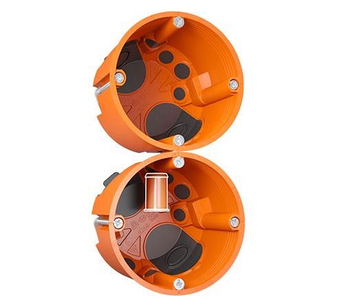 Légmentesen záródó O-range® üreges fali dobozok ECON® technológiával az energiahatékony villanyszereléshez. Az elasztikus ECON® technológiás tömítőmembrán légmentesen zárt elektromos szerelést tesz lehetővé.