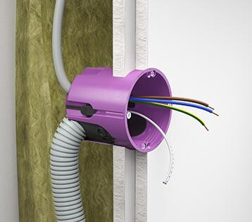 Légmentesen záródó O-range® üreges fali dobozok ECON® technológiával az energiahatékony villanyszereléshez. Az elasztikus ECON® technológiás tömítőmembrán légmentesen zárt elektromos szerelést tesz lehetővé.