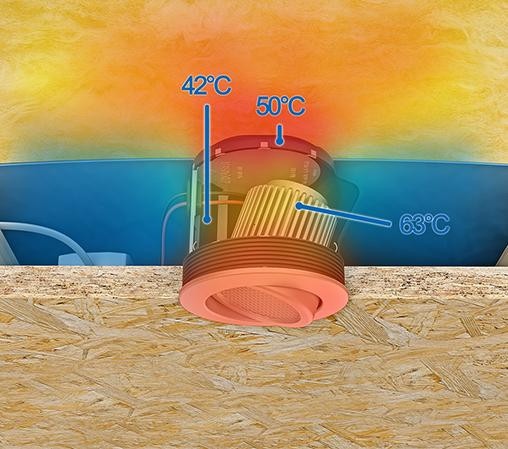ThermoX® LED beépítődoboz merev és forgatható LED beépíthető lámpatestek légmentes beépítéséhez különböző mennyezeti konstrukciókban. A beépítődoboz ház megvédi a környező anyagokat (párazáró fólia, szigetelés stb.) a magas üzemi hőmérséklettől és magát a LED-es lámpatestet is a szennyeződéstől, és légmentes elválasztást hoz létre. A lámpatest és a trafó közötti hőelválasztással kombinálva így maximális élettartam érhető el.
