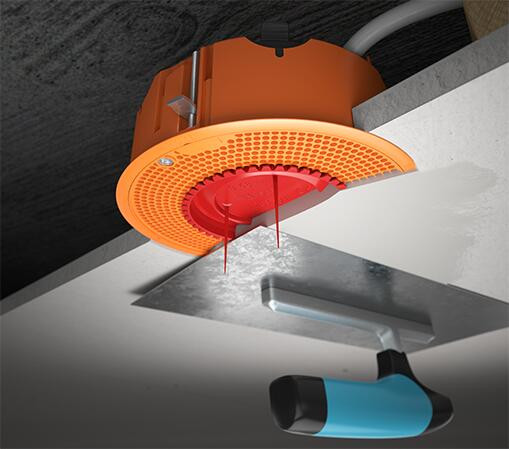 Az új O-range ECON® 120 univerzális szerelvénydobozzal a KAISER maximális rugalmasságot kínál az építkezéseken. Alkalmazásával egy teljes szobaegység vezetékezése mellett különféle berendezések és tartozékok beépítése is lehetséges. Szükség esetén az univerzális rögzítő felület a kívánt méretben megnyitható, így biztosítva a süllyesztett lámpatestek, füstérzékelők és még sok más kiegészítő berendezés tiszta beépítését. A szerszám nélküli kábel- és védőcső bevezetéseknek köszönhetően különösen könnyen szerelhető. A tömítőmembránok az Épületenergetikai Törvény (Building Energy Act – GEG) értelmében állandó légtömörséget és ezáltal energiahatékony szerelést garantálnak.- légtömör (ECON®) kivitel, tömítőmembránokkal