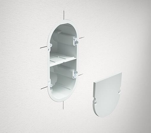 Az HWD 90 elektronikai doboz akár F120 vagy EI120 tűzállósági osztályig megőrzi a fal tűzvédelmi besorolását, miközben helyet biztosít elektronikus kapcsolóelemek, adatdobozok, kábelek és sorkapcsok számára. A doboz lehetővé teszi kábelek és akár M25 méretű védőcsövek bevezetését is.