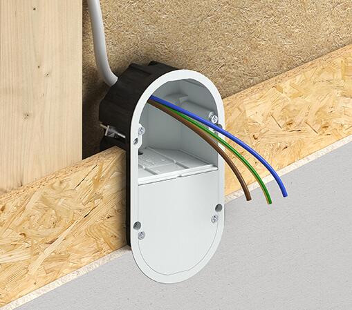 A HWD 90 válaszfal dobozok F30–F120 vagy EI30–EI120 tűzvédelmi falakhoz tanúsított és előírásszerű villamos szerelést tesznek lehetővé. Mostantól fa tartószerkezetű válaszfalakhoz is engedélyezettek F30-B/F60-B minősítésű favázas vagy fapaneles kivitelben – külön kiegészítő intézkedések (pl. burkolás) nélkül.
