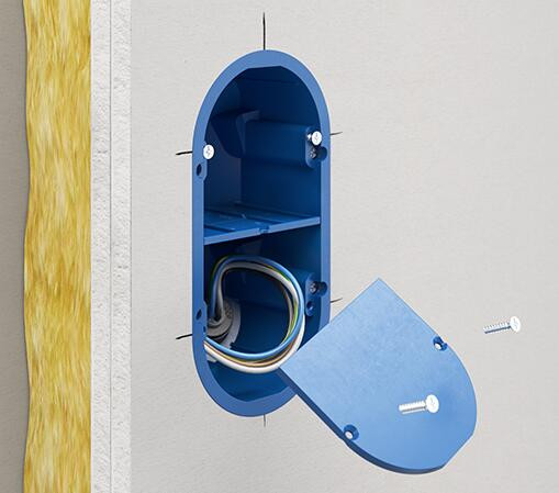 Hangszigetelő Elektronik doboz fokozott hangszigetelési igényű falakhoz. A hangszigetelő Elektronik doboz fenntartja a fal hangszigetelő funkcióját, és helyet biztosít az elektronikus kapcsolókészülékeknek, adatdobozoknak, kábeleknek és sorkapcsoknak. Az elektronikai doboz lehetővé teszi az M25-ös kábelekkel és védőcsövekkel való elhelyezést.