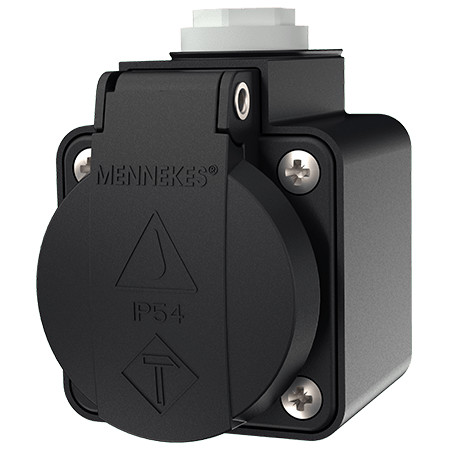 MENNEKES 10120 csapfedeles háztartási (Schuko) fali dugalj 16A 2P+E 230V fekete IP44 - csavaros