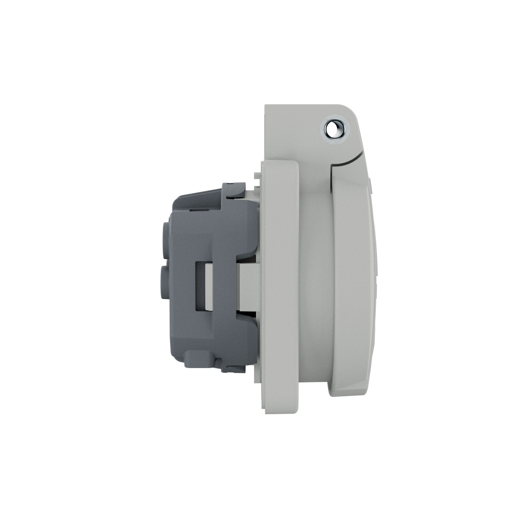 KIFUTÓ TÍPUS - helyettesítő termék a leírásban - MENNEKES 11010 csapfedeles háztartási (Schuko) beépíthető dugalj 16A 2P+E 230V világosszürke IP44 - csavarmentes