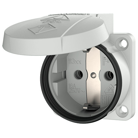 MENNEKES 11330 csapfedeles háztartási (Schuko) beépíthető dugalj gumis peremmel 16A 2P+E 230V világosszürke IP54 - csavaros