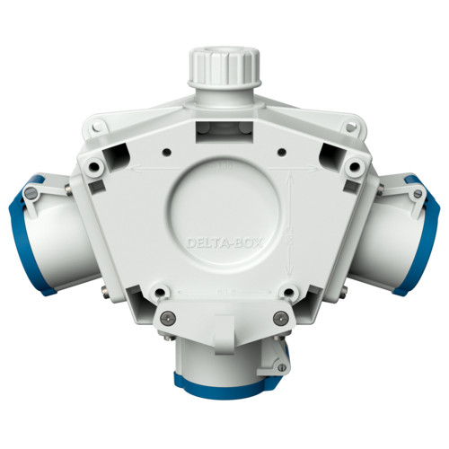 Mennekes DELTA-BOX egy praktikus, kisméretű függeszthető elosztó tokozat, melynek segítségével gyorsan és hatékonyan alakíthatuk ki munkaállomásokat csarnokokban és üzemekben. A telepítéséhez egy függesztőláncra van szükség, amibe a hajlított fém függesztő fület kell befűzni és a tokozat felső két nyílásába be kell beakatsztani. A betápkábelt pedig a felső tömszelencén keresztül a tokozatba található sorkapocsba kell bekötni és már használható is. A DELTA-BOX hátfalára NW 9 mm és NV 13 mm sűrítettlevegős csatlakozó szerelhető fel csavarral (tartozék) a 4 kialakított rögzítési pontba