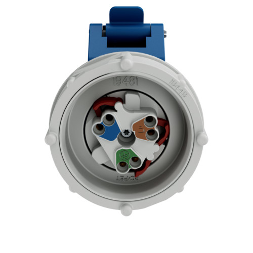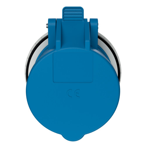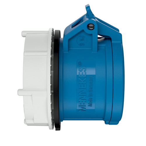 MENNEKES 987 beépíthető ipari aljzat 32A 3p (2p+E) 230V kék IP44 - egyenes, rögzítőgyűrűvel