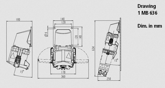 MENNEKES R&S 75053 panelba építhető 15° döntött ipari aljzat 200A 4p 400V 6h IP67