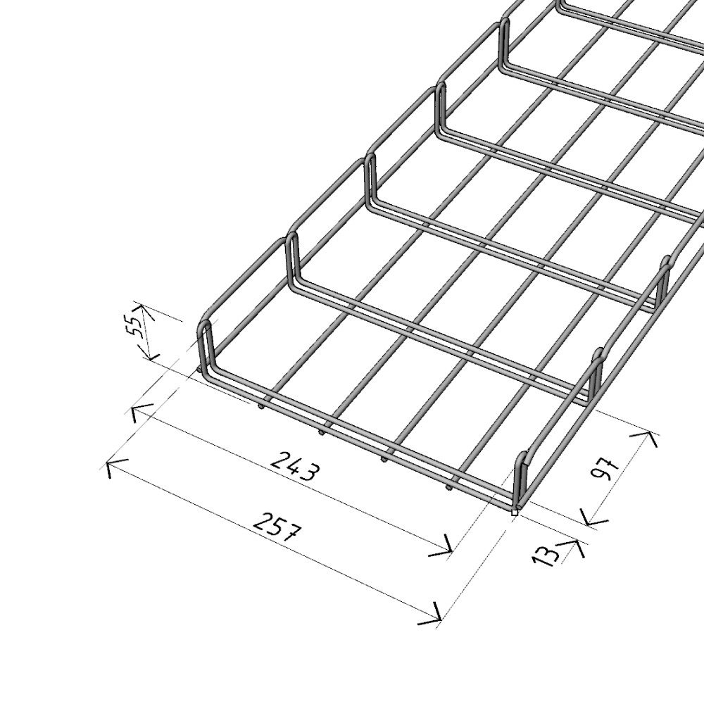 MERKUR2 50/50 rácsos kábeltálca - beltéri - galvanizált méretei