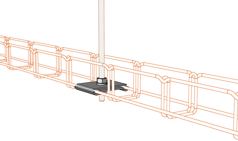A DZM13 függesztő akasztót M8 menetes rudak dróthálós kábeltálcáihoz használják. Ez a telepítés csak M2 50/50, M2 150/50 és M2 150/100 dróthálós kábeltálcákhoz használható. Az ajánlott maximális teherbírás 50 kg.