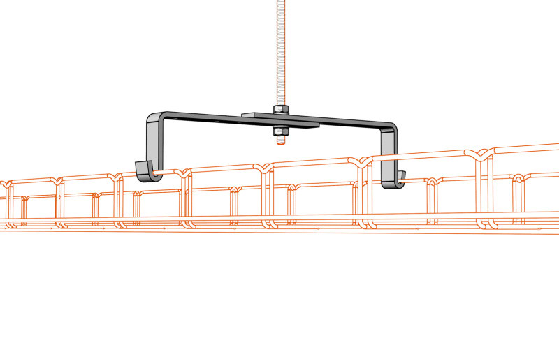 A DZM4 központi akasztó 200-300 mm széles rácos kábeltálcák felfüggesztésére szolgál M8 menetes szárakkal. 100 mm széles tálcákhoz nem használható. Az ajánlott maximális teherbírás 80 kg. Ez a típusú tartó nem kombinálható hálós tálcafedelekkel. Ha burkolattal kell felszerelni, akkor a PZM egyenes tartót kell használni.