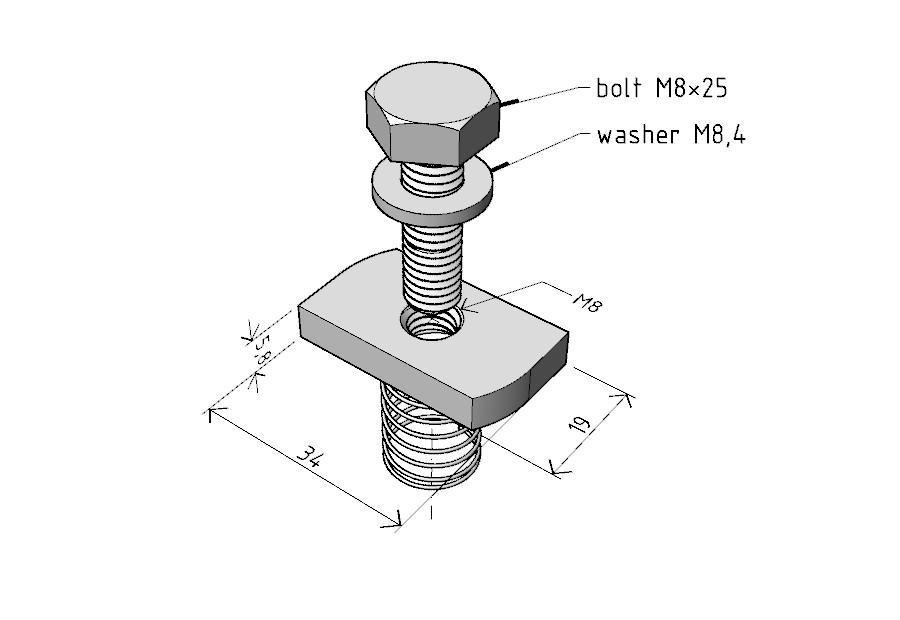 Csavar és alátét: M8×25 hatlapfejű csavar + M8,4 alátét (tartozék)