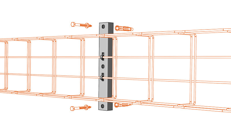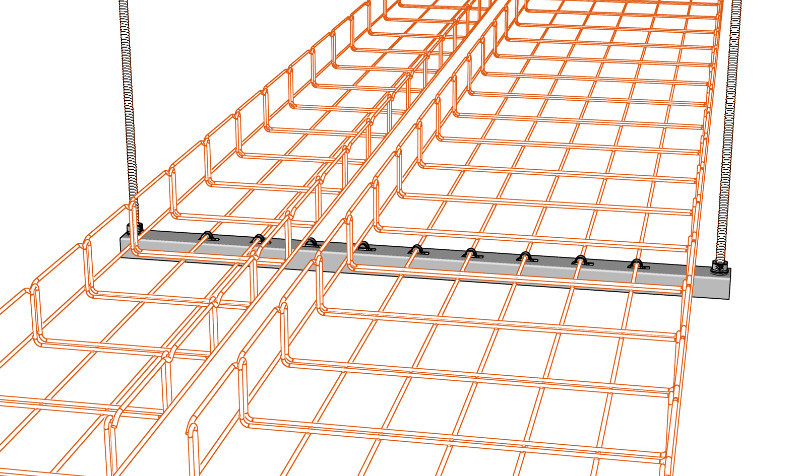 Kábeltálca rögzítés: gyors, csavar nélküli (beakaszt és rányom) rácsos kábeltálca rögzítés