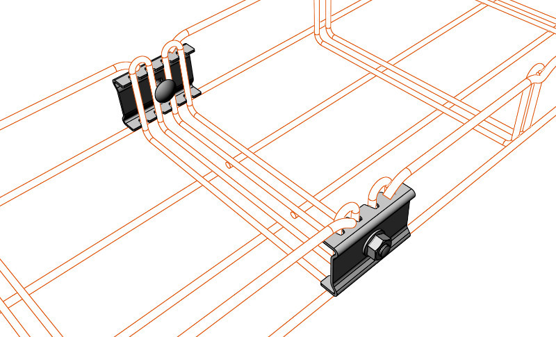 A rácsos kábeltálca oldalfalán lévő csatlakozó elemek megfelelő elhelyezése fontos a teherbírás, valamint az összeszerelt rácsos kábeltálca optimális merevségének eléréséhez, ahogy az ábrán is látható. Ez különösen a 100 mm oldalfalmagasságú rácsos kábeltálcák esetében lényeges, amelyeknél az összekötő elemet közvetlenül a tálca felső széle alatt kell elhelyezni a szabadalmaztatott dupla merevítőkhöz.