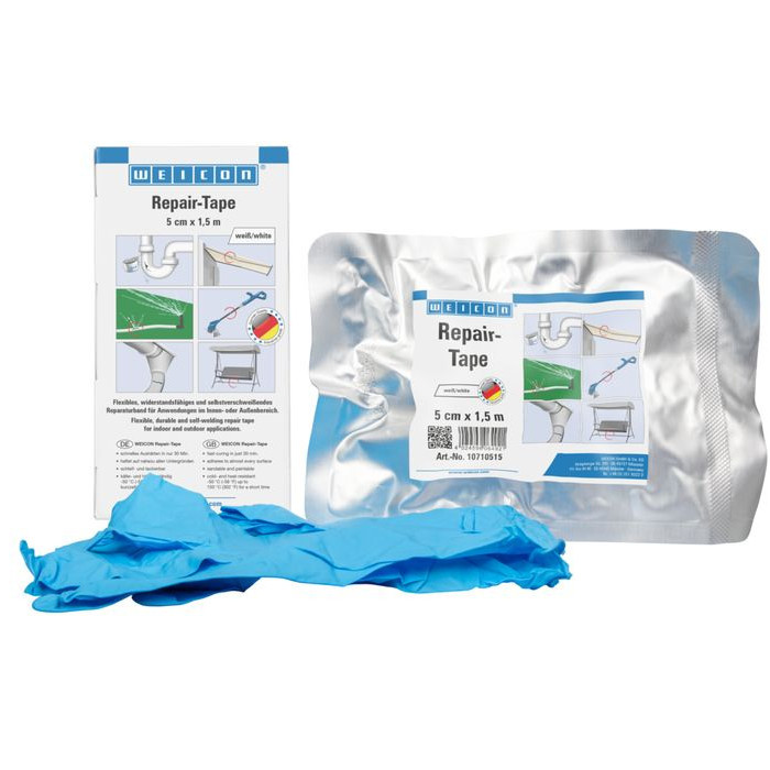 Rugalmas, tartós és önvulkanizáló (kémiailag összeolvad önmagával) javítószalag üvegszállal erősített műanyagból, gyors vészhelyzeti javításokhoz beltéren és kültéren egyaránt. A Repair-Tape speciális gyantával van átitatva, és vízzel érintkezve aktiválódik.