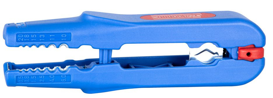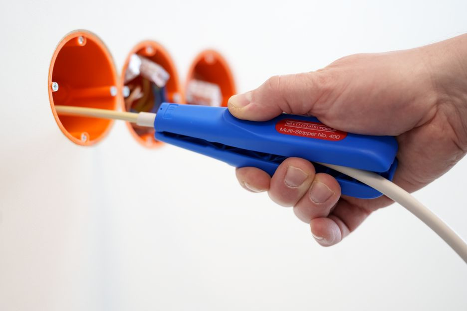 A No. 400 univerzális csupaszító szerszám a következő funkciókhoz: körvágás - hosszirányú vágás - csupaszítás - vágás. Ezzel a szerszámmal a kábelek könnyen csupaszíthatók még a nehezen hozzáférhető helyeken is, pl. mennyezetben és falban, szerelvény- és elosztódobozokban, kapcsolószekrényekben. A kontúr penge a 0,5 mm², 0,75 mm², 1,5 mm², 2,5 mm², 4,0 mm² és 6,0 mm² keresztmetszetű vezetékek csupaszítására használható. A többrétegű csupaszoló lenyűgöz a praktikus kialakításával és a felhasználási lehetőségek széles skálájával.