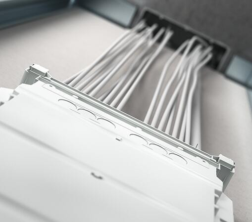 A helyszínen öntött betonfödémekhez vagy gyári előregyártott födémelemekhez használható új központi át és levezető doboz különböző átmérőjű kábelek központi összekötésére szolgál. Központi betáplálási pontként tiszta átvezetést tesz lehetővé az áramköri elosztódobozokra és a kábelrendező rendszerekre, lehetővé téve például, hogy a lakás elektromos beépítéséhez szükséges összes tápkábel egy átmeneti ponton gyüljön össze.