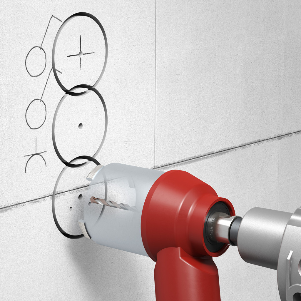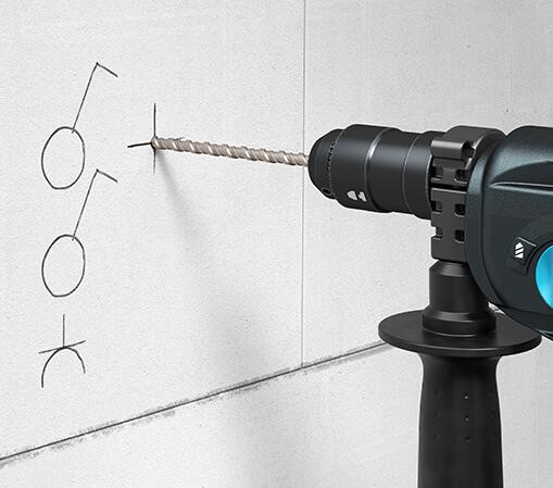 Termékelőnyök: egyszerű használat, tartós kivitel (fém vezetőcsap, edzett fúrógyűrűk), függőleges és vízszintes jelöléshez vízmértékekkel