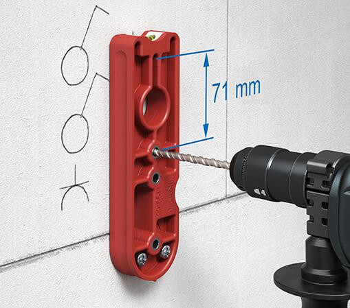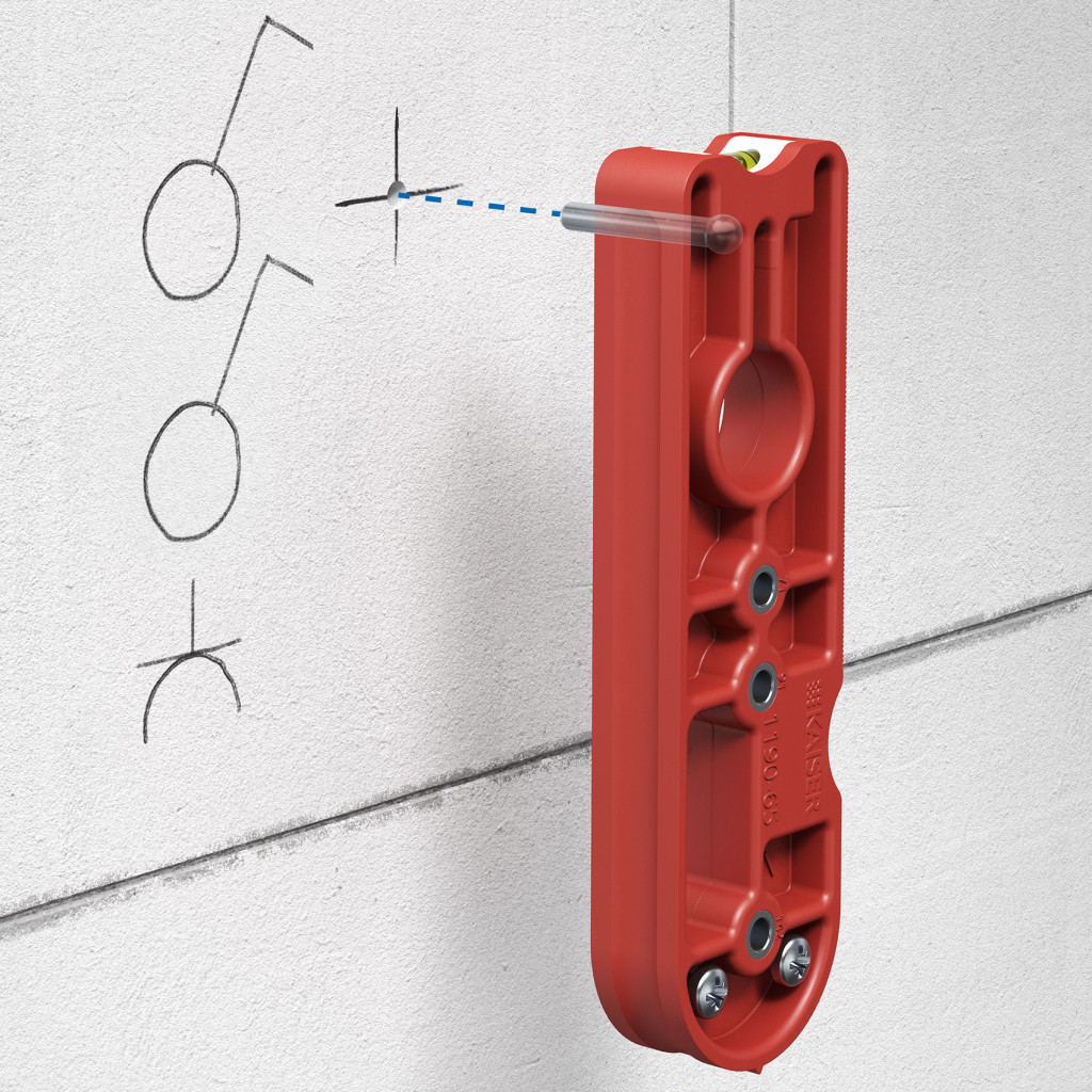 Kaiser szerelvénydoboz beépítéséhez: 71 mm-es és 91 mm-es központi távolság jelöléséhez
