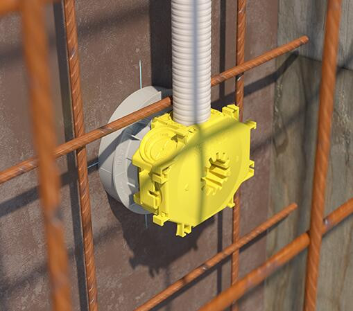A Kaiser B¹ az új helyszínen öntött vasbeton szerkezetbe építhető termékcsalád villanyszerelési munkákhoz. A jól bevált rendszerjellemzők mellett, mint például a lapos elülső rész, a robusztus rögzítő kupolák / doboztestek és a rugalmas ellentartó-nyílás, az új B¹ termékcsalád innovatív védőcső bemenetekkel és masszív rögzítőnyílásokkal rendelkezik az új B¹ Prefix® rögzítőfül rendszerhez.